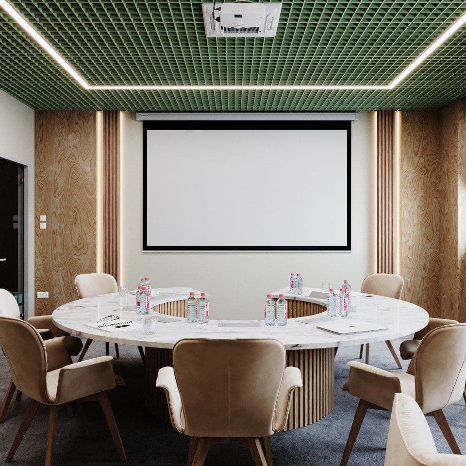 Светлая переговорная крупной международной компании с мировым именем и глубокой историей. Легкость, динамика и экологичные материалы в отделке отражают ценности бренда, вдохновляют сотрудников и настраивают гостей офиса на продуктивное общение